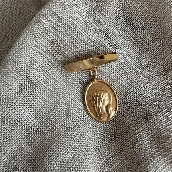 Esta hermosa medalla está elaborada en oro 14k, con un delicado relieve de la Virgen en perfil que transmite serenidad y protección. Su acabado pulido resalta cada detalle y la convierte en un recuerdo perfecto para ocasiones especiales como bautizos, primeras comuniones o nacimientos.