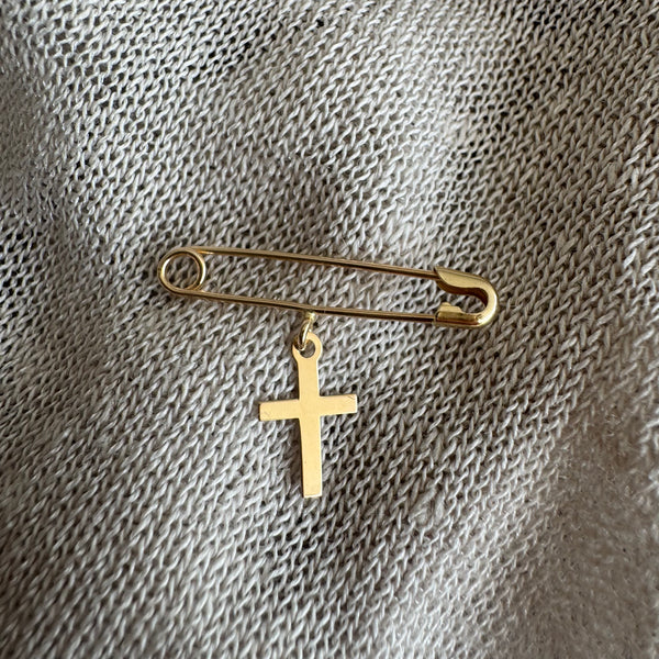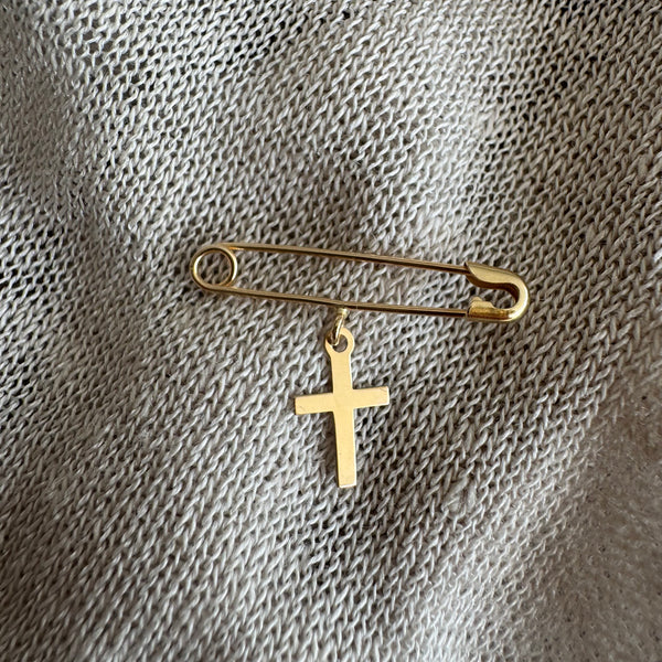 Pin de oro 14k con cruz colgante, ideal para bautizo o. un ragalito muy bonito!