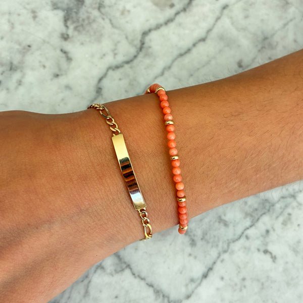 Pulsera de coral natural con aros de oro, diseñada especialmente para niña. Una joya fina y llena de significado.