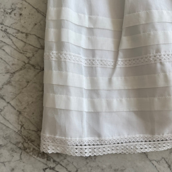Hermoso Ropón Manga Larga, hecho artesanalmente con organza, detalles de tira bordada y liston